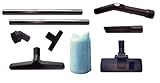 Accessory kit includes: handle, two 19" stainless steel extension tubes, upholstery nozzle, crevice tool, brush, wet material filter and dry and wet floor pickups.